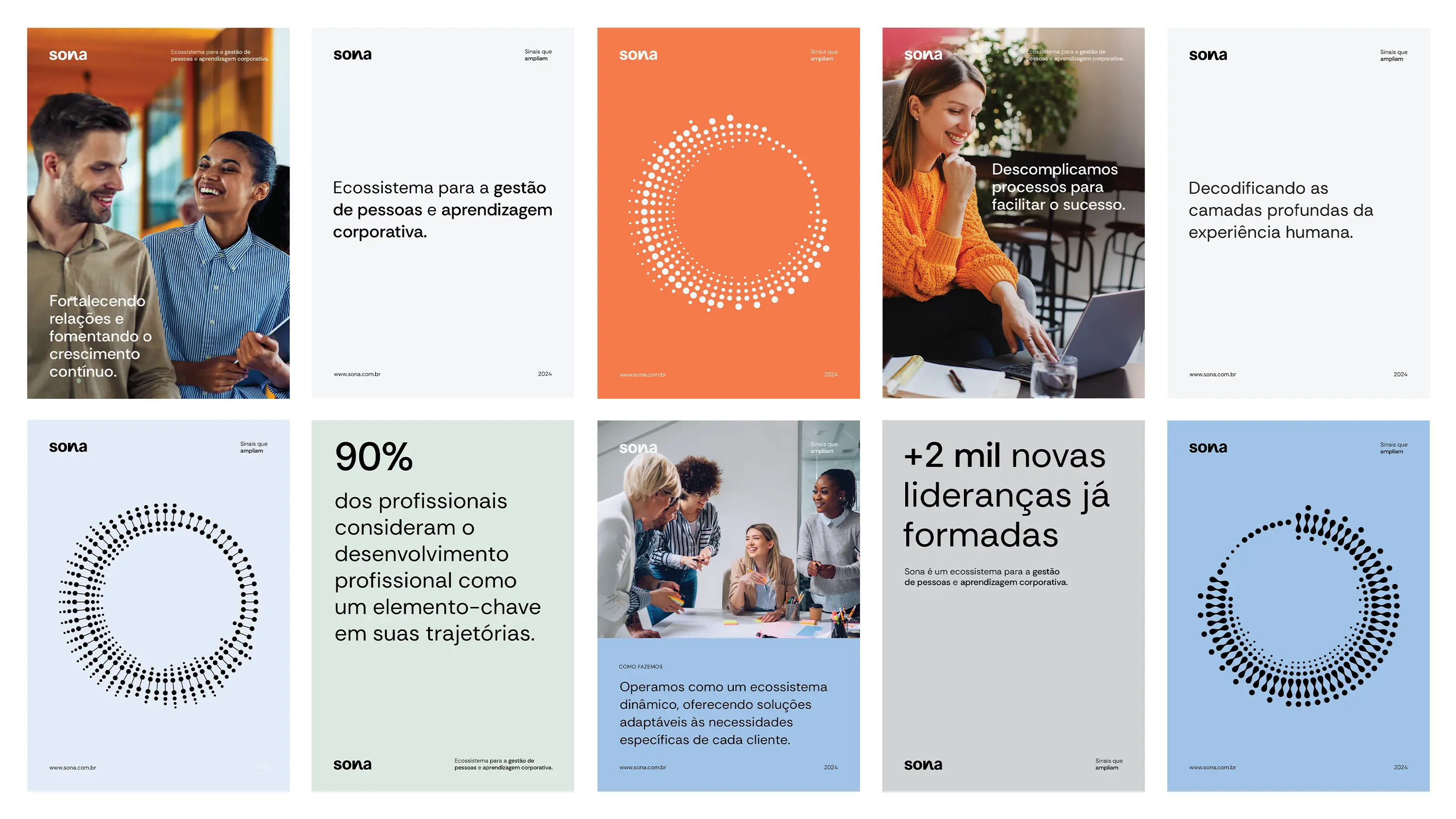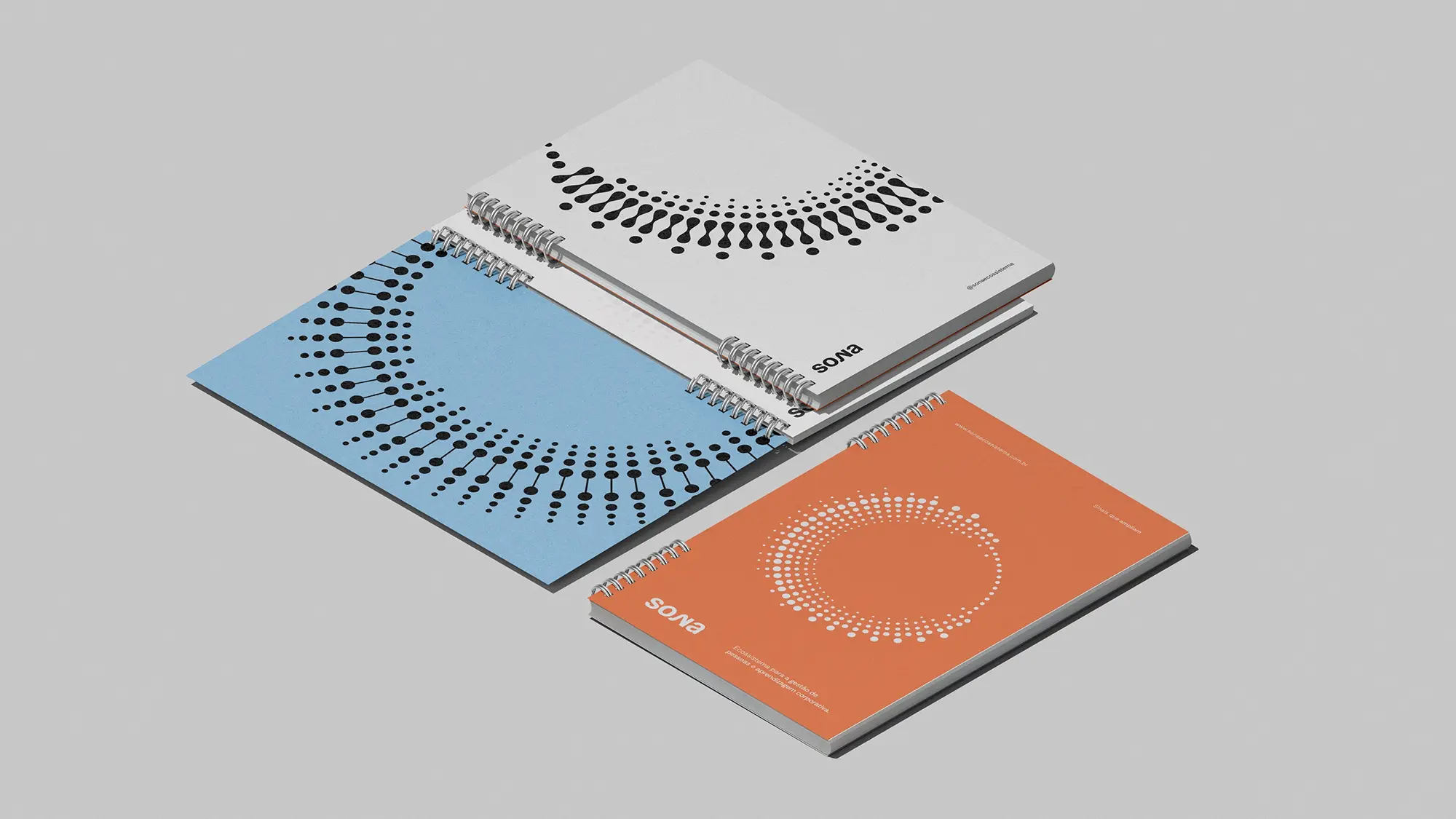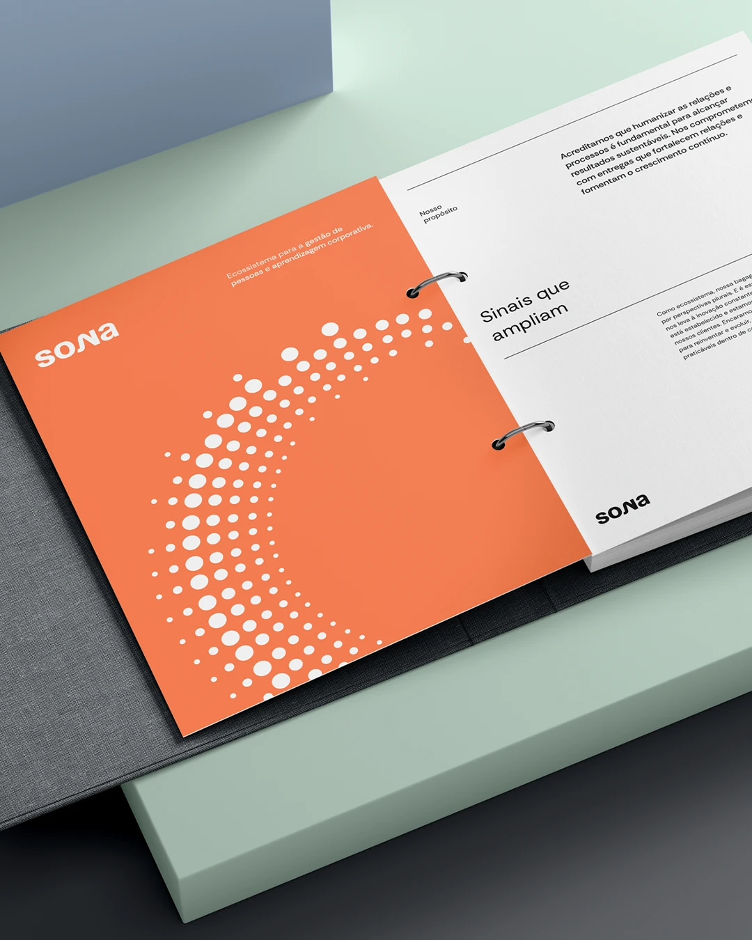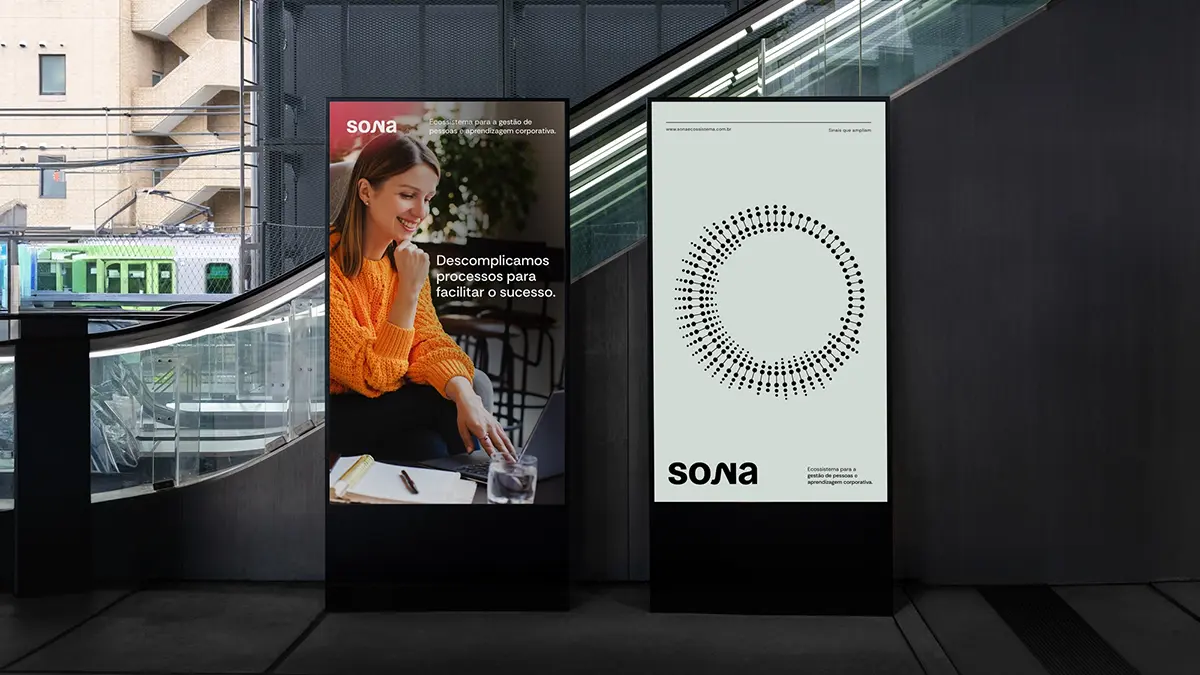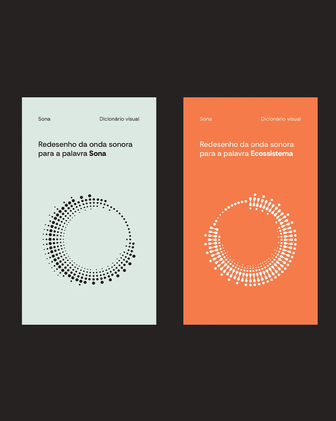 A identidade visual da Sona parte do conceito de que tudo no universo possui uma frequência, audível ou não. São essas vibrações que se transformam em informação e nos permitem dar sentido ao que está ao nosso redor. A partir dessa premissa, a proposta do projeto foi desenvolver um dicionário visual que traduzisse as palavras e conceitos associados à marca. Como ponto de partida, foram redesenhadas as ondas sonoras das palavras Sona, ecossistema e diagnóstico, transformando-as em um sistema que expressa movimento, conexão e presença — com potencial de expansão para novas palavras que integram o universo da marca.